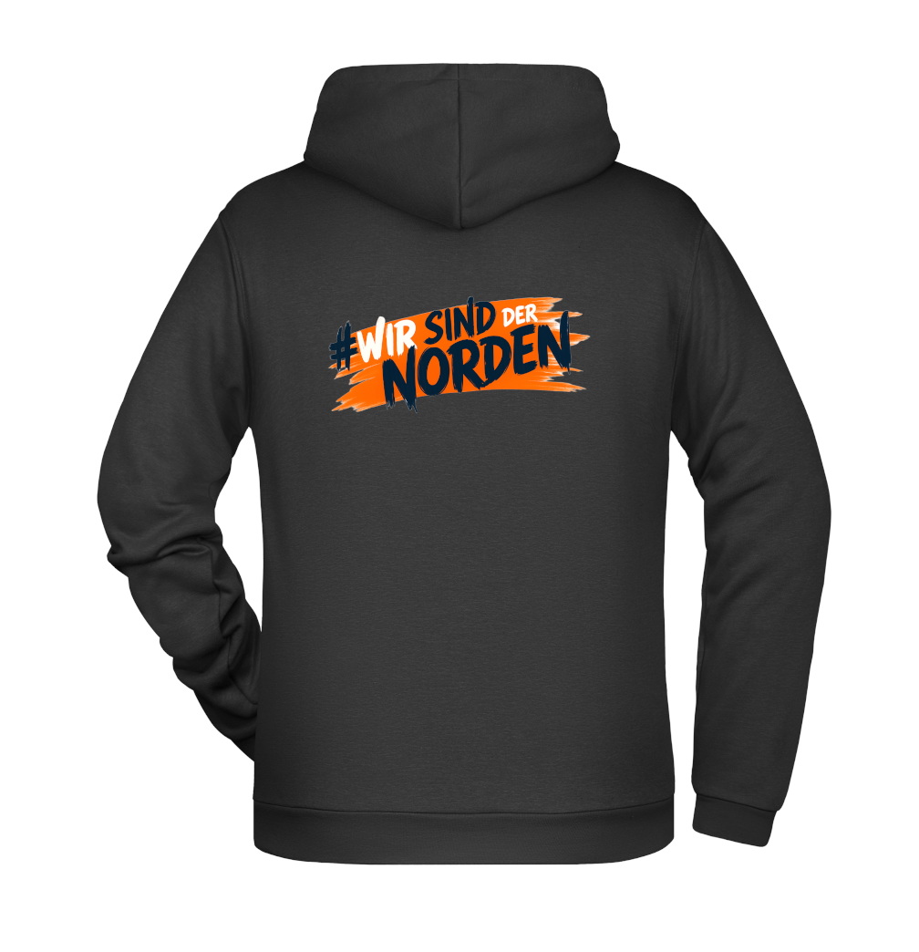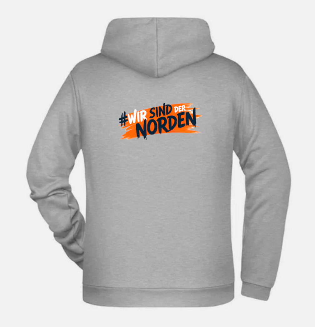 Der Hoodie ist in den Größen 98/104 bis 5XL erhältlich und kommt mit einem präzisen Logo-Aufdruck des Vereins auf der Vorderseite. Du kannst zwischen den Vereinsfarben Orange und Navy sowie Black, White und Grey wählen und so genau das Modell auswählen, das zu dir passt.